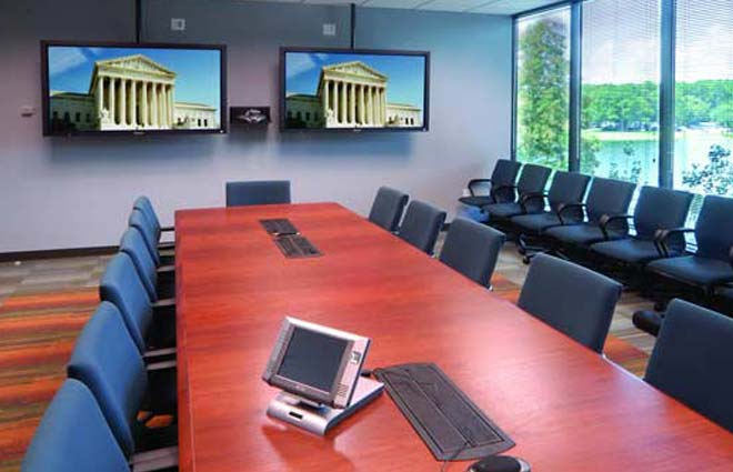 We seamlessly integrate the various systems of an automated conference room, from projectors to lighting to audio/video and overall control of the entire integrated system. An automation system makes it possible for your sales or board meeting to work together: lighting, phone system, video sources, display devices and audio systems.